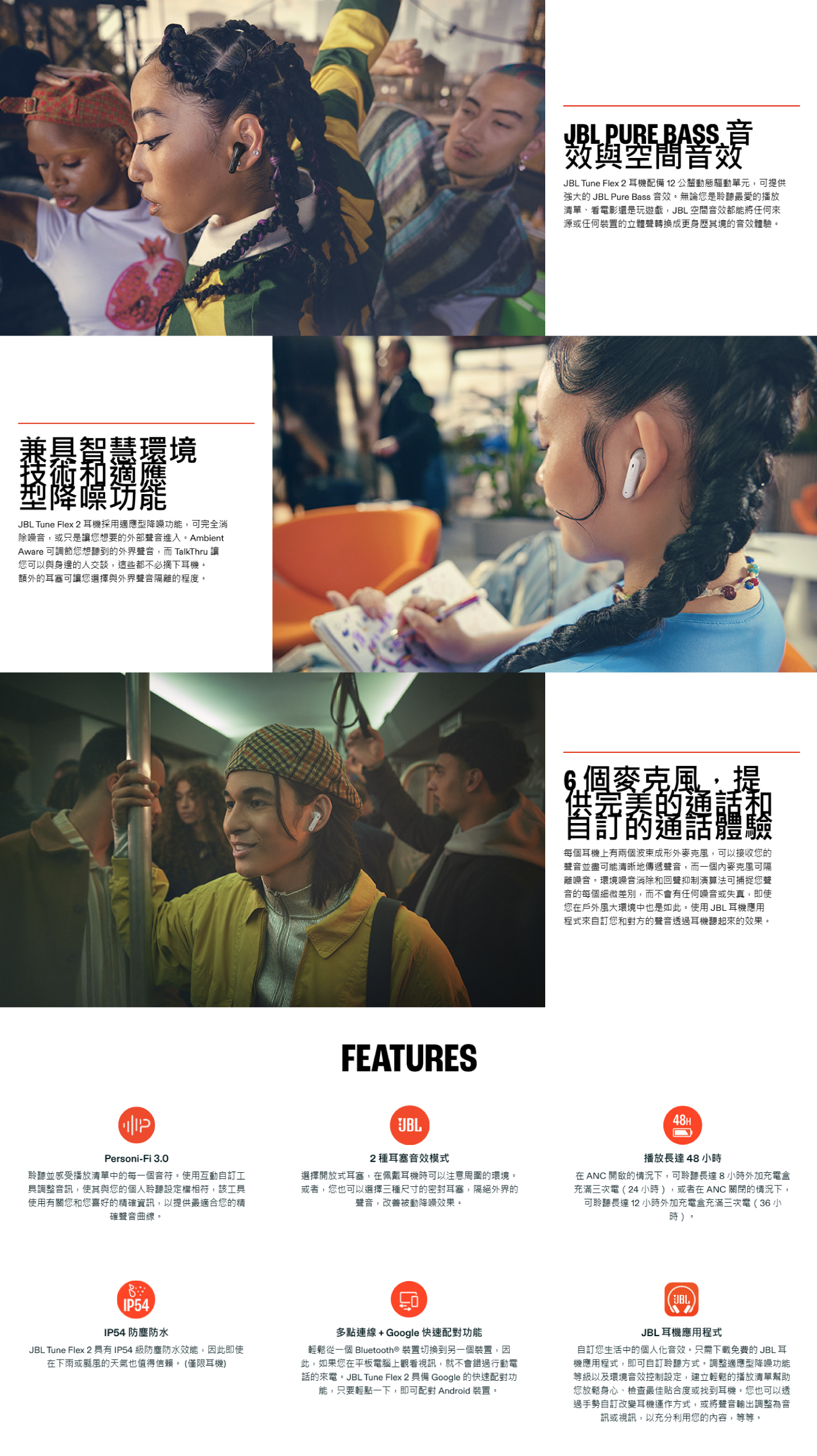 JBL Tune Flex 2 具有 IP54 級防塵防水效能,因此即使在下雨或颳風的天氣也值得信賴。